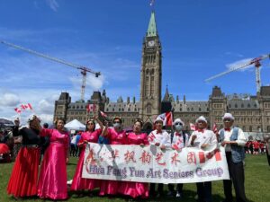 6月24号去渥太华国会山庄参加反思排华法案100周年集会,全车齐唱电视剧主题曲:爱是桥梁!几千华人在国会大厦门口发出了自己的最强音,百年耻辱得以雪耻,这全靠祖国的强大。今天华枫韵艺术团的阿叔阿姨也不甘示弱,华人全体的大事,子孙后代希望我们的努力能创造更美好的生活。